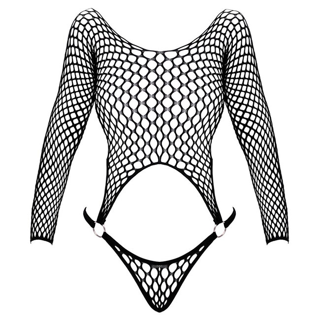 Črn mrežasti body znamke Fantasy by Cottelli je izdelan iz modnega velikega mrežastega materiala.