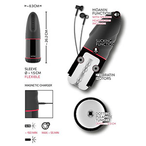 Lahkotno in seksi stokanje preko priloženih slušalk bo osebo, ki uporablja masturbator, še bolj vzbudilo in se lahko nastavlja v 3 glasnostih. Vse funkcije je mogoče nadzorovati ločeno ali kombinirati z gumbi na tej enostavni spolni igrači.