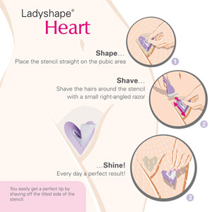Modelček v obliki srčka je izrazite in nagajive oblike. Preprosto uporabite ta priročen model in si odstranite dlačice okoli modelčka. Postopek je zelo preprost, rezultat pa je urejena intimna frizura, v obliki srčka. Izdelek je primeren tudi kot darilo ter popestritev intimnih trenutkov.