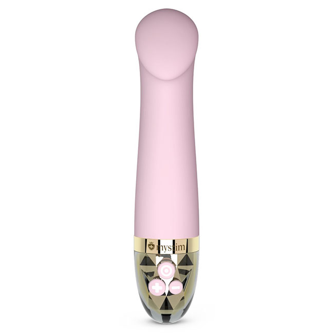 Vibrator Right on Ron iz Mystima, ki ga je enostavno držati, s ploščato glavo za ciljno stimulacijo vročih točk in intenzivno intimno masažo.