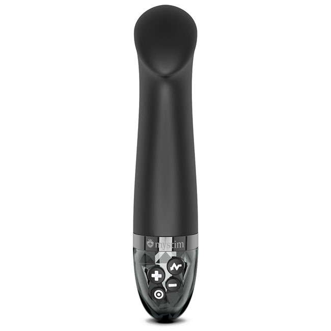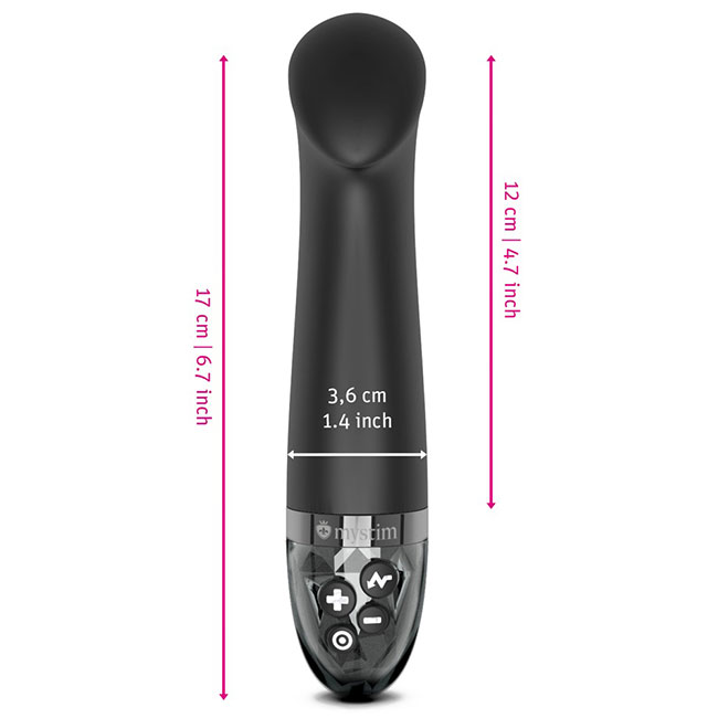 Priročen vibrator Right on Ron E-stim znamke Mystim s sploščeno glavo za ciljno stimulacijo vročih točk in intenzivno intimno masažo. Solo ali s partnerjem.