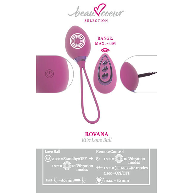 Vibrairajoča ljubezenska kroglica ROVANA RC znamke beau cœur stimulira vagino z globokimi vibracijami. Popolna kombinacija prijetne stimulacije in učinkovitega treninga medeničnega dna.